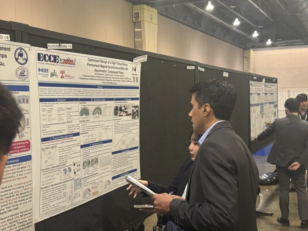 M2小林さんがアメリカのフィラデルフィアで行われた国際会議「IEEE Energy Conversion Conference & Expo(ECCE) 2025」にて研究成果のポスター発表を行いました.2400人以上の参加者が集まるTop Conferenceです.