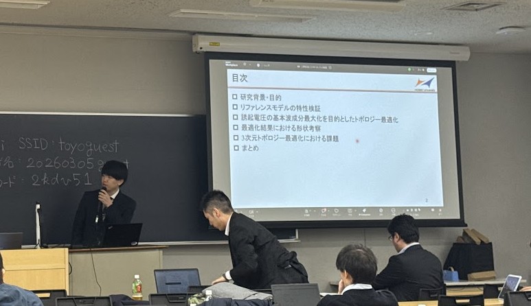 M1上野さんが埼玉県の東洋大学川越キャンパスで開催された電気学会静止器/回転機合同研究会に参加し、発表を行いました。